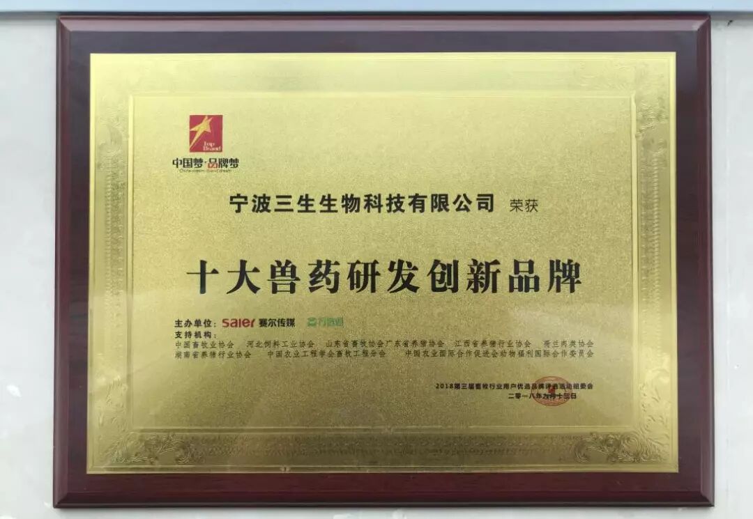 9月13日,宁波三生应邀参加了由赛尔传媒主办的哈兽维科杯“中国梦•品牌梦”2018第三届畜牧优选品牌评选颁奖典礼,并荣获十大兽药研发创新品牌奖项。
