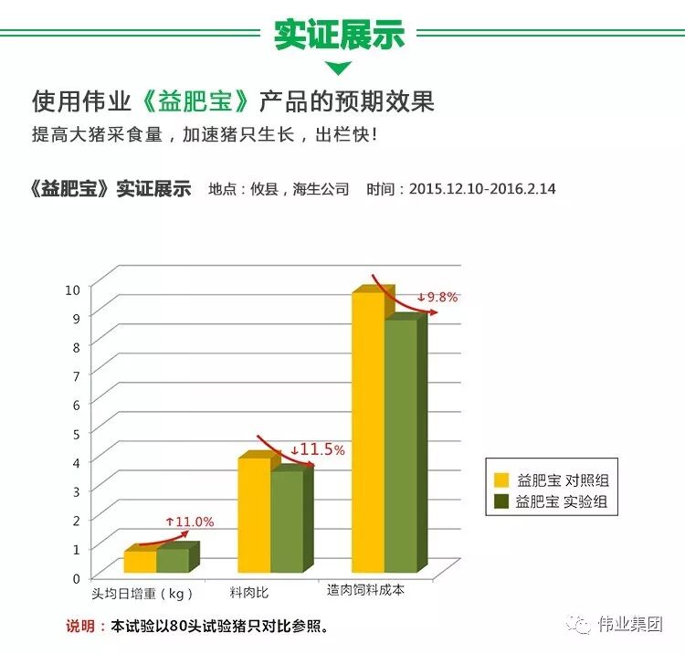 伟业6%预混料产品性价比高、质量稳定,大量猪场实验数据表明,伟业饲料的预混料料肉比在2.4左右,用伟业6%预混料料肉比至少可低0.2,这意味着每头猪至少能多赚60元。所以说,无论行情好坏,选择质量稳定,料肉比低的饲料才是降低养殖成本,增加猪场效益的有效途径。