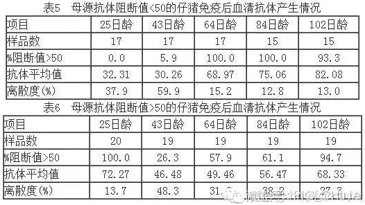 2、不同母猪群,或同一母猪群,在免疫状态有差异的情况下,仔猪的母源抗体持续时间都存在差异,所以不同猪场,或同一猪场,不同批次的仔猪,母源抗体会存在部分差异,但总体而言,只要母猪群是按免疫程序(分批次)进行有效的免疫,仔猪在25-30日龄进行首次免疫相对是比较理想的。