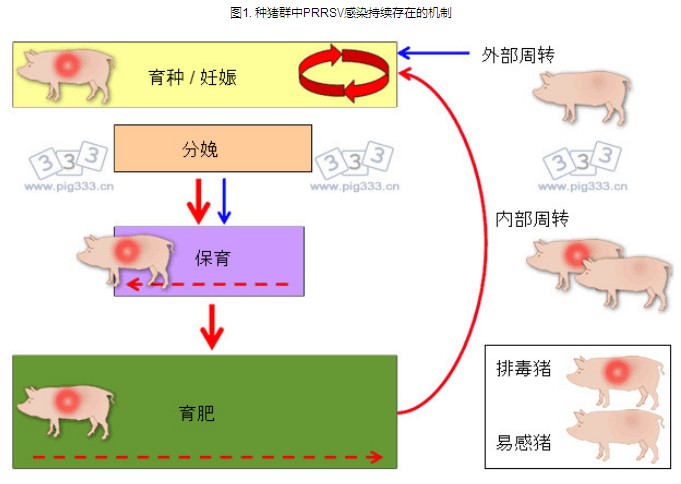 图1. 种猪群中PRRSV感染持续存在的机制