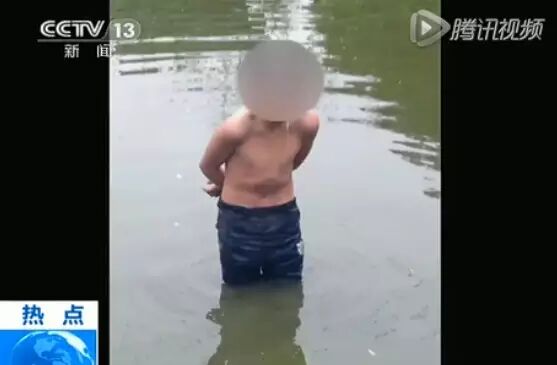 而视频中,男孩双手被反绑,赤裸上身站在水塘里,在围观村民们的责问声中不断哭喊求饶,期间还有人用竹鞭抽打了他两下,男孩跑到池塘中央躲避,当男孩回到岸边时,有人将他踹回了池塘。尽管现场围观的人很多,但并没有人上前阻止。