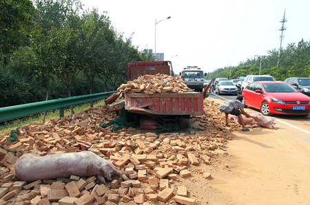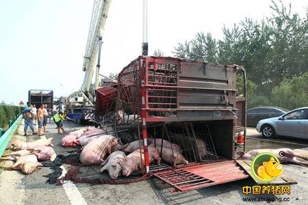 许多生猪被压在车身下面,当场被压死,其他存活下来的生猪也因为受到惊吓,四处乱窜,在高速路上“瞎逛”。随后,路过的车主看见之后报警。