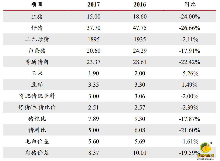 图1 2016-2017年度生猪指标对比 (单位:元/公斤;元/头)
