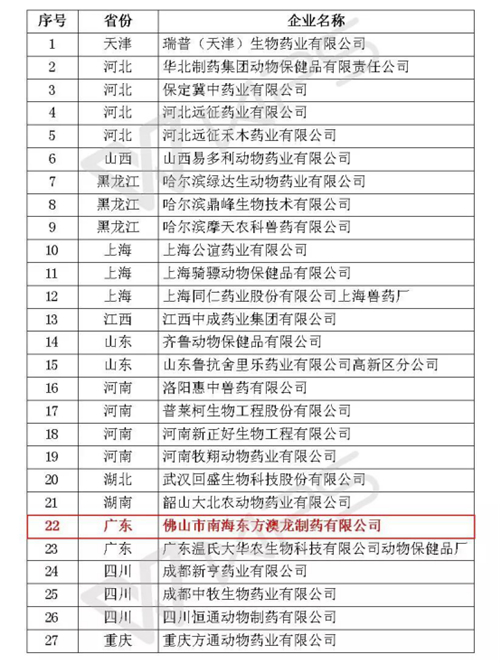 27家兽药企业上“红榜”