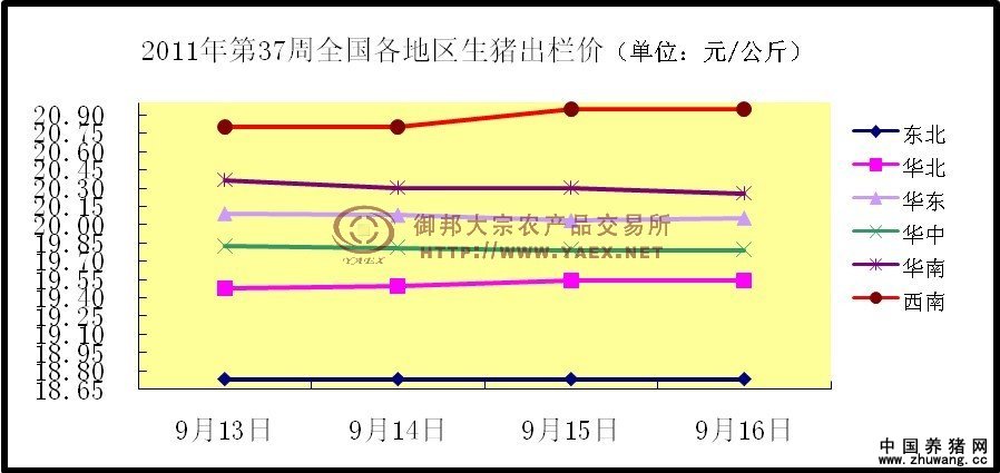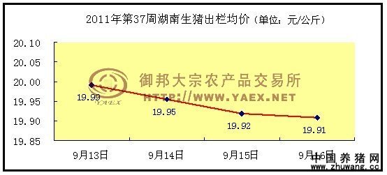 据本所监测,2011年第37周,湖南地区生猪出栏均价变化如下: