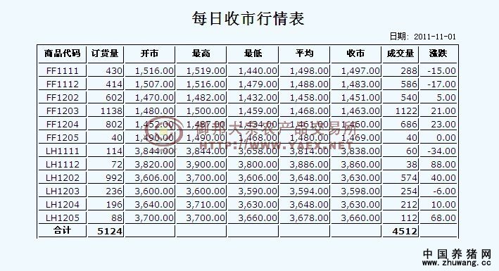 其余各商品合约具体收市情况如下:冻干精膘合约今日结束调整调整,出现反弹势头。近期成交相对活跃的冻干精膘合约FF1203今日收出一根上涨阴线。收盘上涨16元/100公斤,涨幅1.11%。各交易商应严格控制好仓位,谨慎操作。