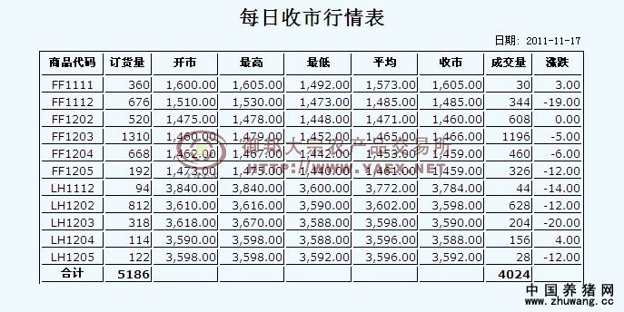 御邦交易所商品合约今日普遍调整,近期成交比较活跃良杂活大猪合约LH1202三连阳之后,再次陷入调整,最终以小跌报收。收盘下跌16元/200公斤,跌幅0.44%。