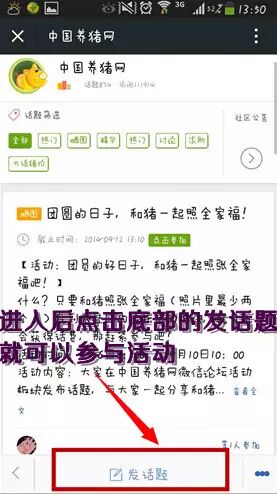 •活动内容:大家在中国养猪网微信论坛活动板块发布话题,与大家一起分享和猪照的全家福照片,成为一次难忘的中秋节,就有机会获得话费奖励,快行动吧~
